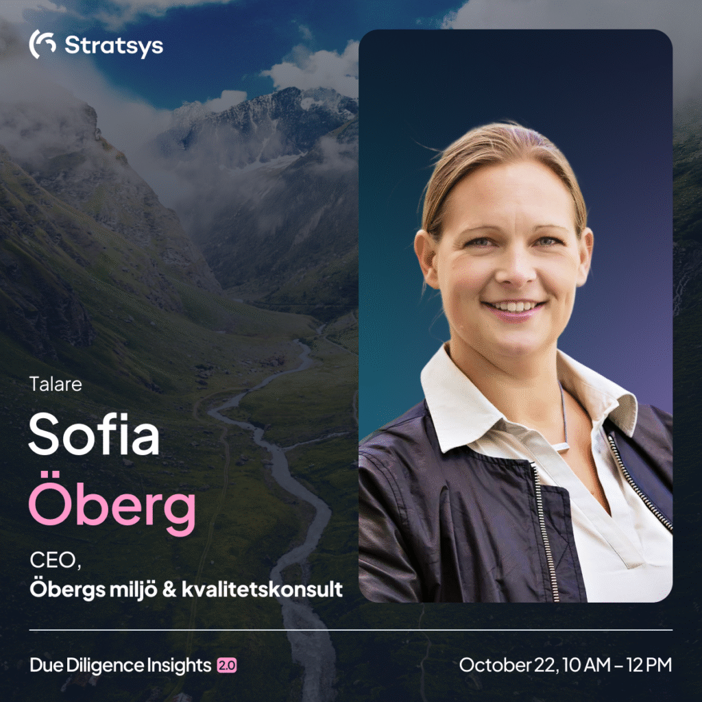 Öbergs grundare och chef Sofia Öberg kommer att vara en av talarna på Stratsys event Due Diligence Insights 2.0 – Futureproofing your value chain den 22 oktober.